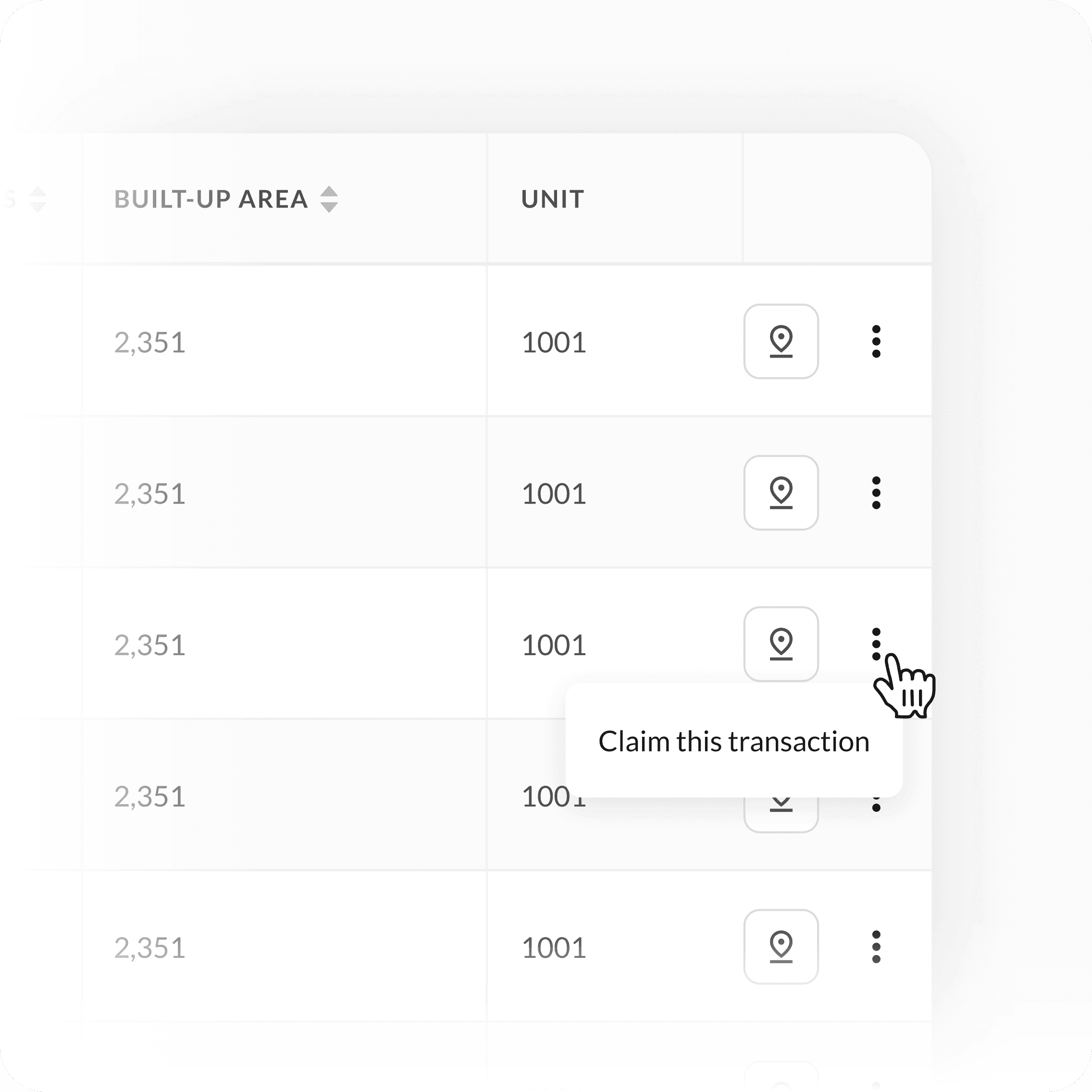 We then tried placing the Claim button within an ellipsis menu to prevent cluttering the transactions table, but this made the feature too unnoticeable.