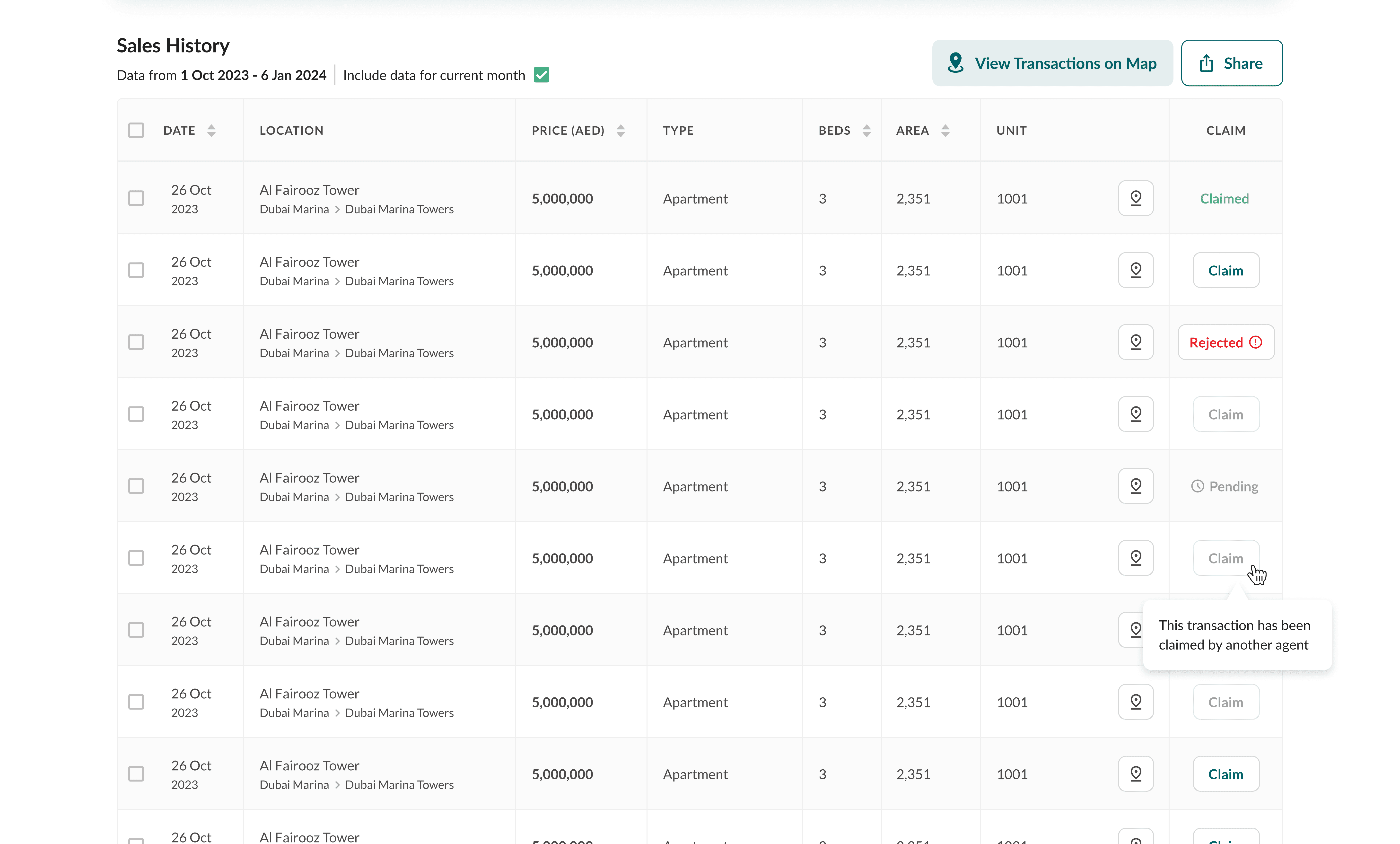 Figuring out how agents would track their claims was the next crucial thing. Would they do so on the Dubai Transactions page itself, on their profile, or on an entirely new page?