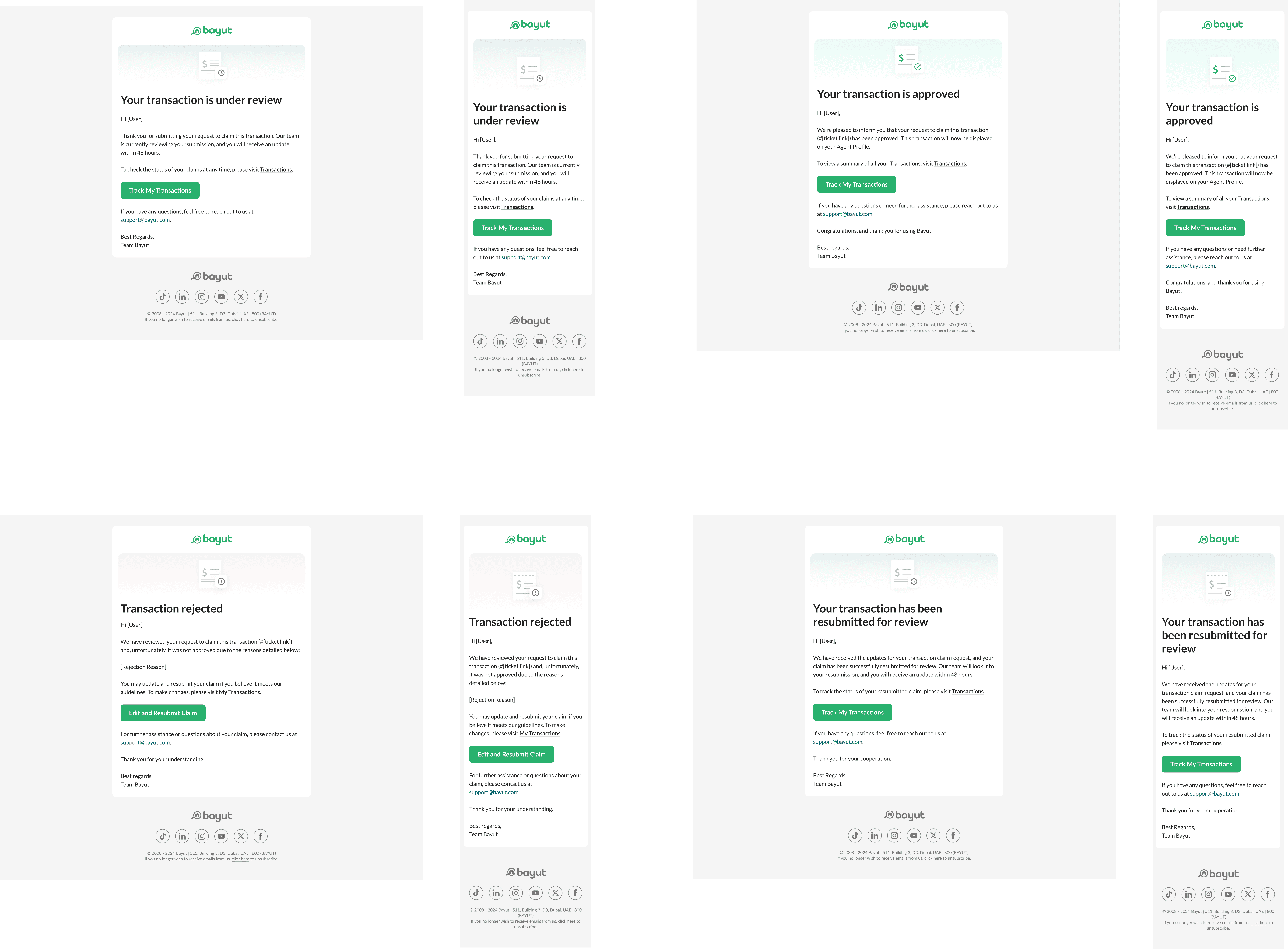 As standard practice, agents are to be alerted when their claims have been submitted, approved, rejected, or resubmitted. I designed the confirmation emails covering these four statuses, and assisted in developing them.